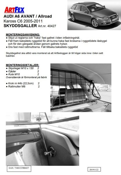 Modellanpassat lastgaller/hundgaller från Artfex till Audi A6 Avant C6 mellan 2005-2011