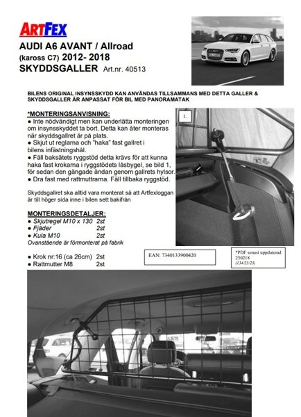 Modellanpassat lastgaller/hundgaller från Artfex till Audi A6 Avant C7 mellan 2012-2018