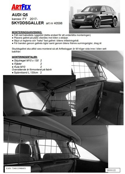 Modellanpassat lastgaller/hundgaller från Artfex till Audi Q5 FY från 2017->