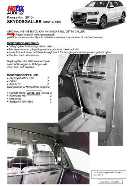 Modellanpassat lastgaller/hundgaller från Artfex till Audi Q7 4M från 2015->
