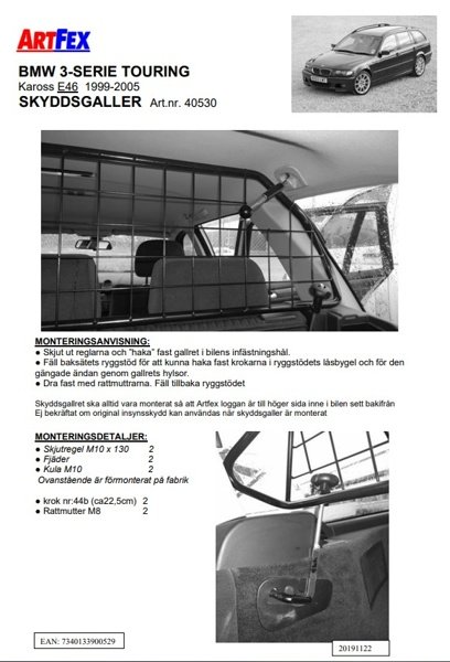 Modellanpassat lastgaller/hundgaller från Artfex till Bmw 3-Serie E46 Touring mellan 1999-2005