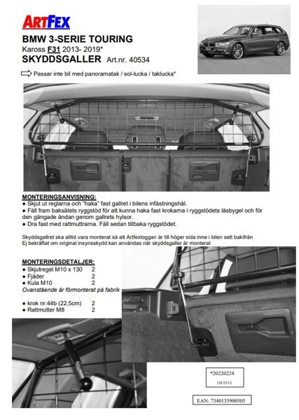 Modellanpassat lastgaller/hundgaller från Artfex till Bmw 3-Serie F31 mellan 2013-2019