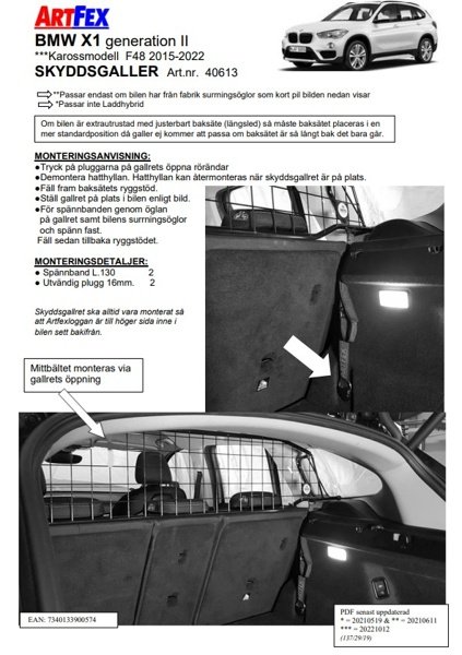 Modellanpassat lastgaller/hundgaller från Artfex till Bmw 5-Serie X1 F48 mellan 2015-2022