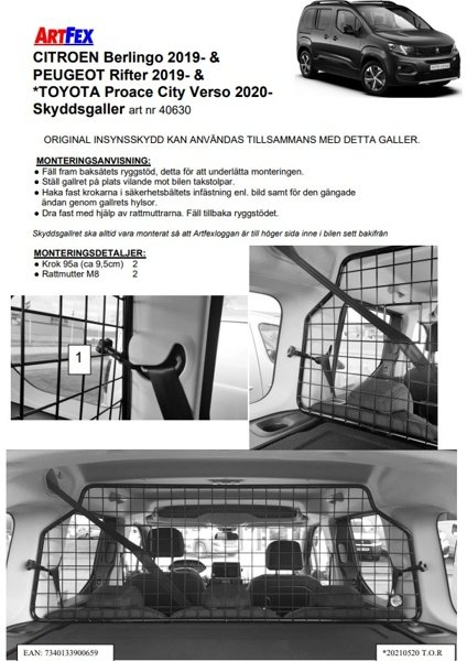 Modellanpassat lastgaller/hundgaller från Artfex till Citroen Berlingo III från 2019->