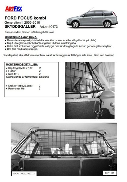 Modellanpassat lastgaller/hundgaller från Artfex till Ford Focus II Kombi 2005-2010