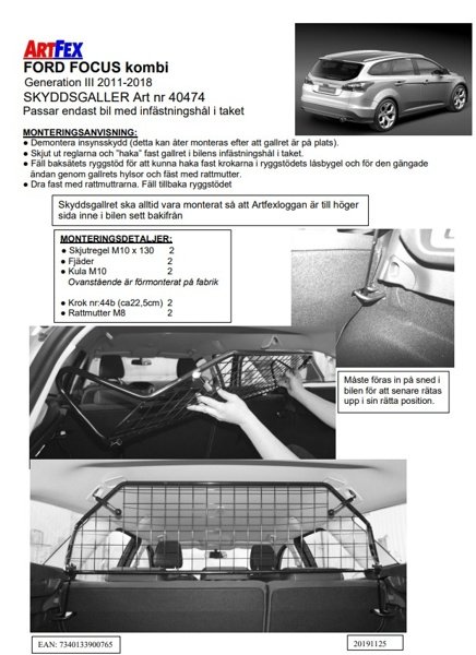 Modellanpassat lastgaller/hundgaller från Artfex till Ford Focus III Kombi mellan 2011-2018