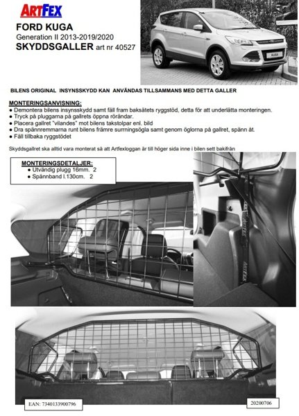 Modellanpassat lastgaller/hundgaller från Artfex till Ford Kuga II mellan 2013-2019