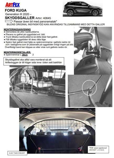 Modellanpassat lastgaller/hundgaller från Artfex till Ford Kuga III från 2020->