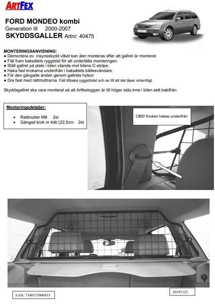 Modellanpassat lastgaller/hundgaller från Artfex till Ford Mondeo Kombi III mellan 2000-2007