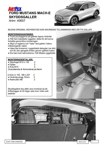 Modellanpassat lastgaller/hundgaller från Artfex till Ford Mustang MACH-E från 2021->