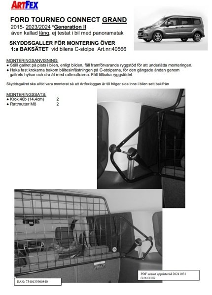 Modellanpassat lastgaller/hundgaller från Artfex till Ford Tourneo Connect Grand mellan 2015-2022
