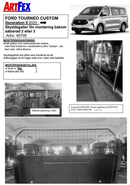 Modellanpassat lastgaller/hundgaller från Artfex till Ford Tourneo Custom från 2025->
