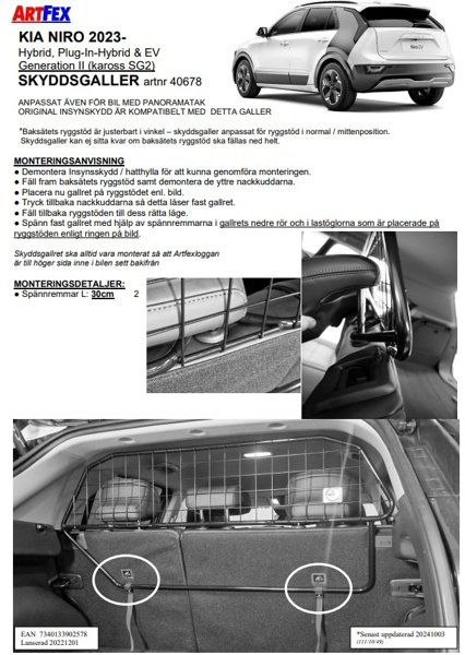 Modellanpassat lastgaller/hundgaller från Artfex till Kia Niro från 2023->