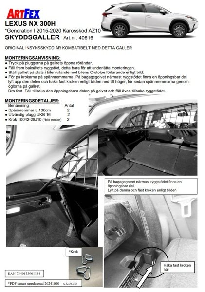 Modellanpassat lastgaller/hundgaller från Artfex till Lexus NX 300H mellan 2015-2020.
