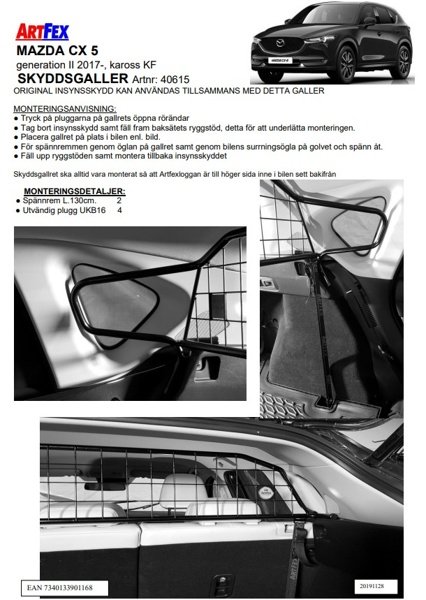 Modellanpassat lastgaller/hundgaller från Artfex till Mazda CX-5 II KF från 2017->