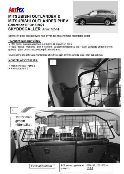 Modellanpassat lastgaller/hundgaller från Artfex till Mitsubishi Outlander III mellan 2013-2021