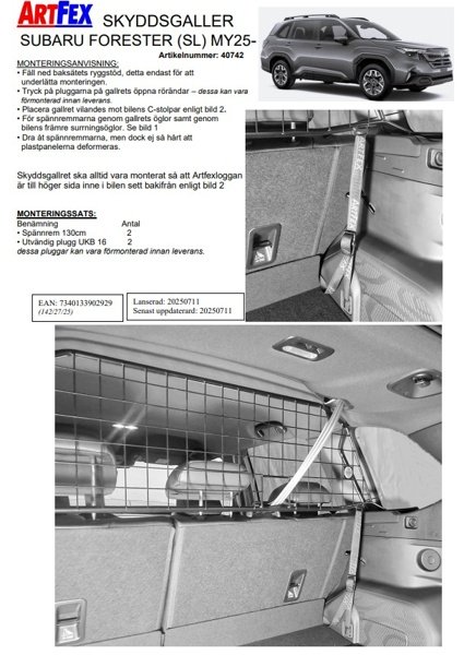 Modellanpassat lastgaller/hundgaller från Artfex till Subaru Forester SL från 2025->