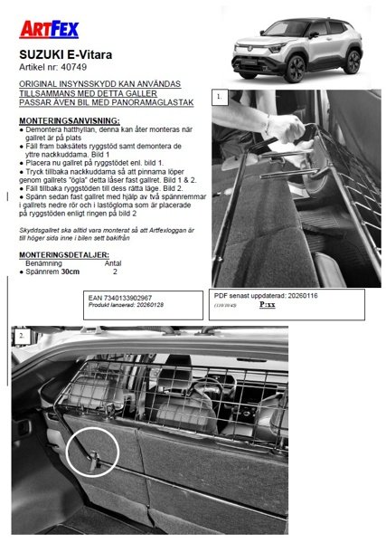 Modellanpassat lastgaller/hundgaller från Artfex till Suzuki E-Vitara från 2025->