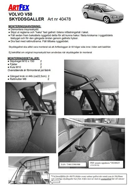 Modellanpassat lastgaller/hundgaller från Artfex till Volvo V50 mellan 2004-2012.