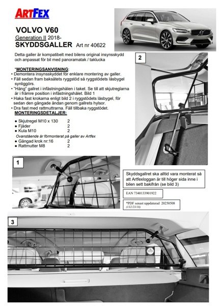 Modellanpassat lastgaller/hundgaller från Artfex till Volvo V60 II från 2019->