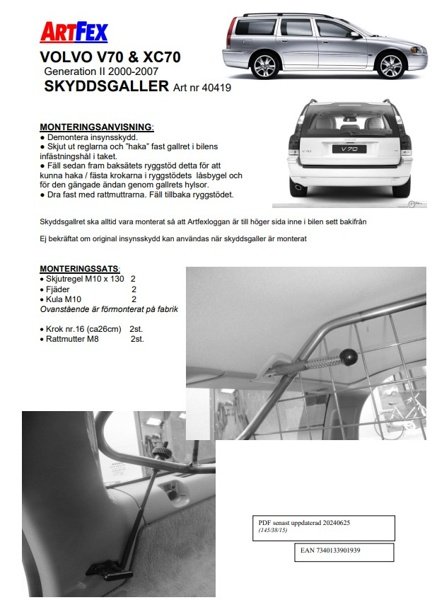 Modellanpassat lastgaller/hundgaller från Artfex till Volvo V70/XC70 II mellan 2001-2007