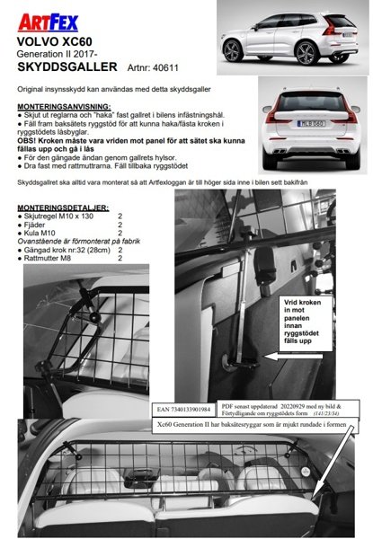Modellanpassat lastgaller/hundgaller från Artfex till Volvo XC60 II från 2017->