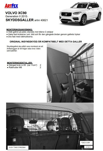 Modellanpassat lastgaller/hundgaller från Artfex till Volvo XC90 II från 2015->