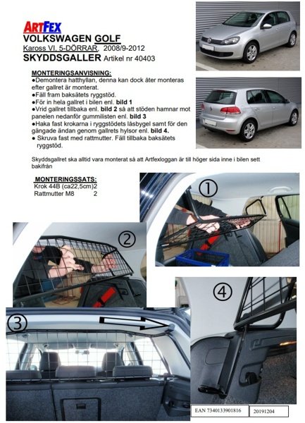 Modellanpassat lastgaller/hundgaller från Artfex till VW Golf VI 5-Dörrars mellan 2008-2012