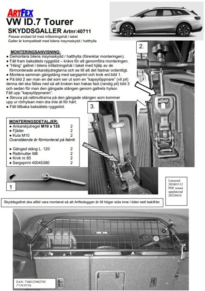 Modellanpassat lastgaller/hundgaller från Artfex till VW ID.7 Tourer från 2024->