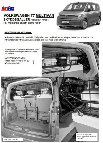 Modellanpassat lastgaller/hundgaller från Artfex till VW T7 Multivan från 2022->