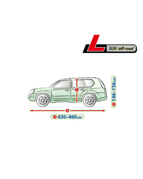 Mät bilens längd från stötfångare till stötfångare samt höjd från tröskel till tak. Detta kapell är anpassat för längd 430–460 cm och höjd 146–156 cm. Noggrann mätning säkerställer bästa passform för din SUV.