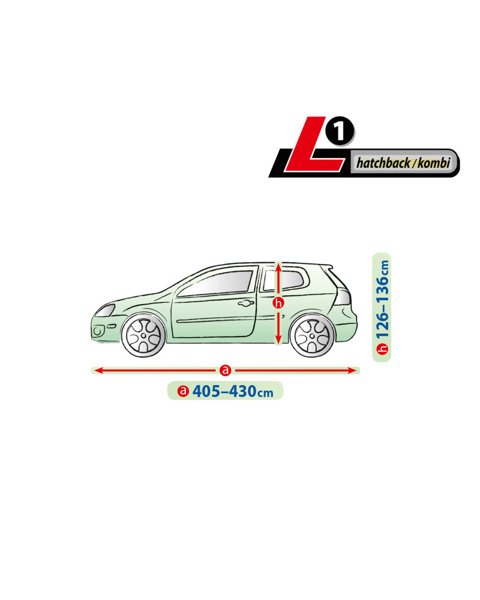 Mät bilens längd (stötfångare till stötfångare) och höjd (från tröskel till tak). Detta kapell är anpassat för längd 405–430 cm och höjd 126–136 cm. Genom att mäta själv säkerställer du bästa passform.