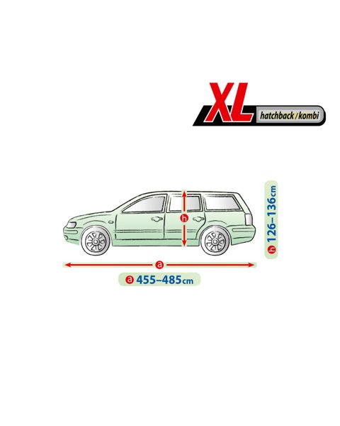 Mät bilens längd från stötfångare till stötfångare samt höjd från tröskel till tak. Detta kapell är anpassat för längd 455–485 cm och höjd 126–136 cm. Rätt mätning är avgörande för optimal passform.