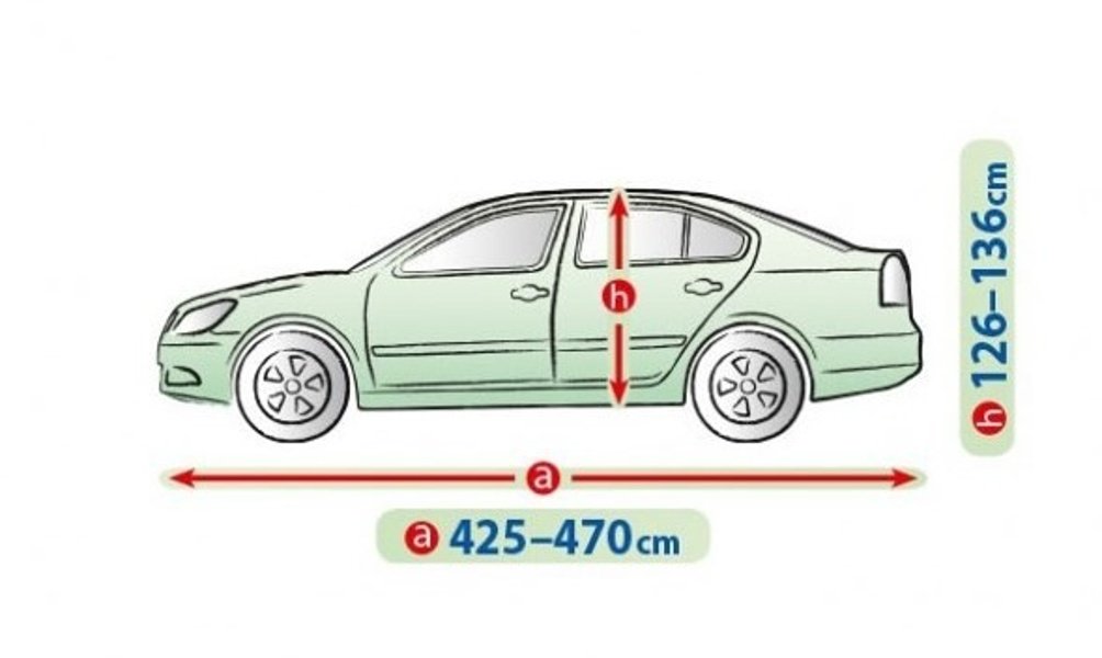 L Sedan passar bilar med en längd på 425–470 cm och höjd 126–136 cm. Kontrollera alltid din bils mått innan köp för att få rätt passform.