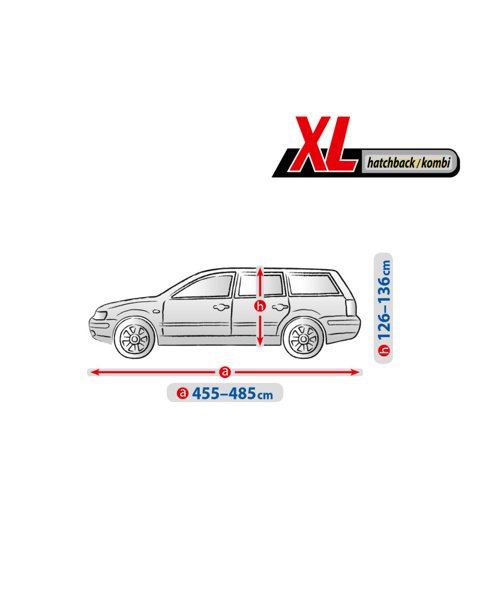 XL Kombi passar bilar med en längd på 455–485 cm och höjd 126–136 cm. Kontrollera alltid bilens mått innan köp för att säkerställa rätt passform.