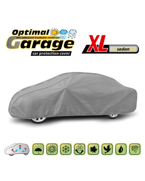 Optimal Garage från Kegel är en uppgraderad modell som kombinerar styrka och användarvänlighet. Med sitt förstärkta 3-lagers tyg skyddar kapellet effektivt mot regn, snö, smuts och UV-strålning. För extra stora sedaner i XL-klassen ger det en stabil passform tack vare elastiska kanter och en slitstark konstruktion.