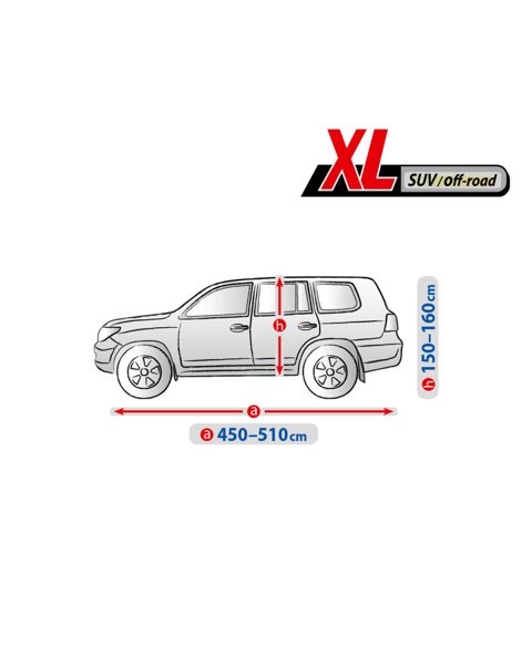 XL SUV passar bilar med en längd på 450–510 cm och höjd 150–160 cm. Kontrollera alltid bilens mått innan köp för att säkerställa bästa möjliga passform.