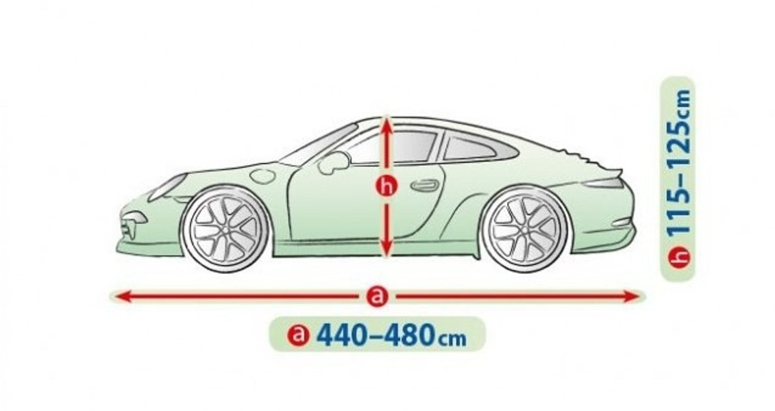 XL Coupe passar bilar med en längd på 440–480 cm och höjd 115–125 cm. Kontrollera alltid bilens mått innan beställning för att säkerställa optimal passform.