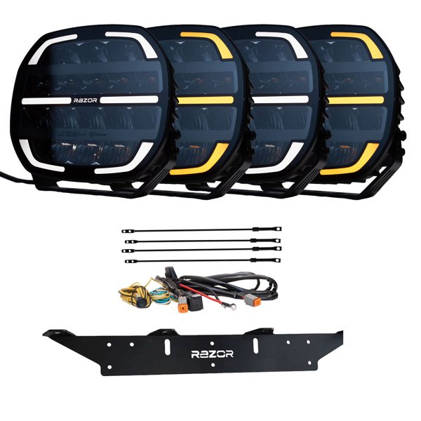 4 st Razor Dragon 9" ger en imponerande ljusmatta med lång användbar räckvidd och bred täckning längs vägrenen. Den moderna designen med kantig front och valbart vitt/amber-positionsljus lyfter helhetsintrycket på allt från SUV till transportbil.
