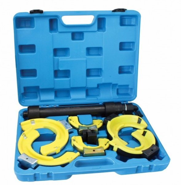 Fjäderspännarsats för säkert byte av fjädrar och stötdämpare.