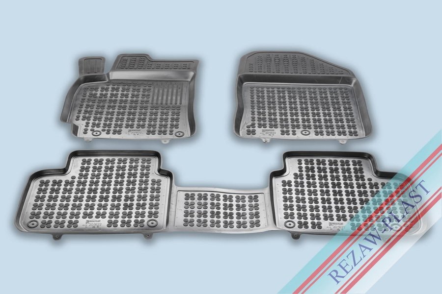 Modellanpassade kupemattor i svart gummi.