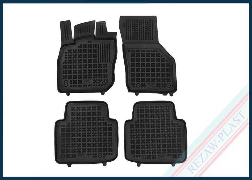 Modellanpassade kupemattor i svart gummi.
