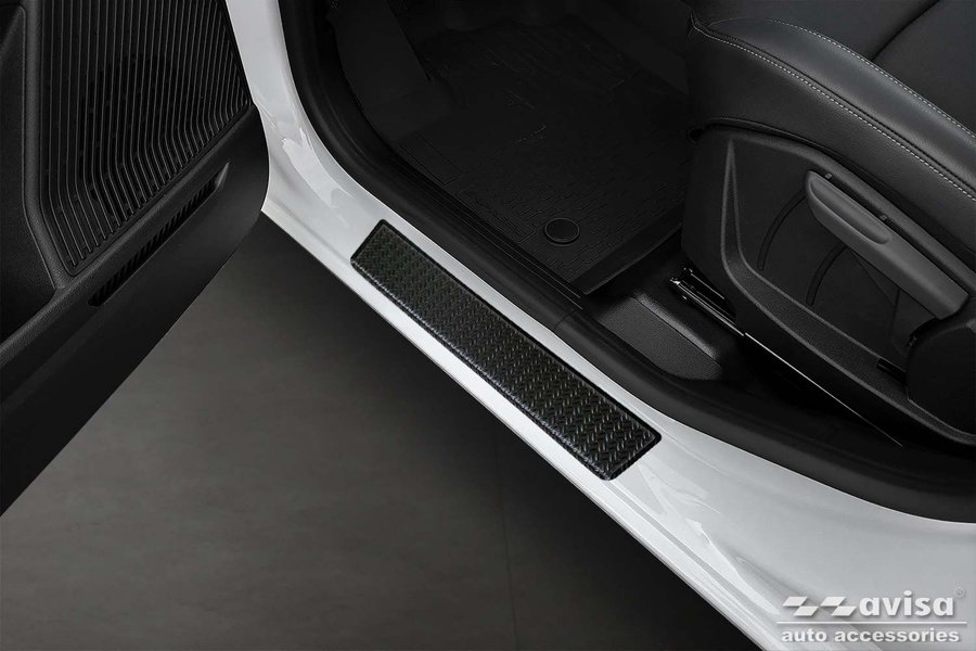 Modellanpassade instegslister i borstat svart stål till din Skoda Kamiq. Ge din bil ett exlusivare utseende och samtidigt skydda dina trösklar. Monteras lätt på din bil med förmonterad 3M-tejp.
