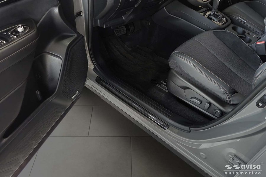 Modellanpassade instegslister i borstad svart stål till din Subaru Forester VI 2024->. Ge din bil ett exlusivare utseende och samtidigt skydda dina trösklar. Monteras lätt på din bil med förmonterad 3M-tejp. Sats om 4 delar