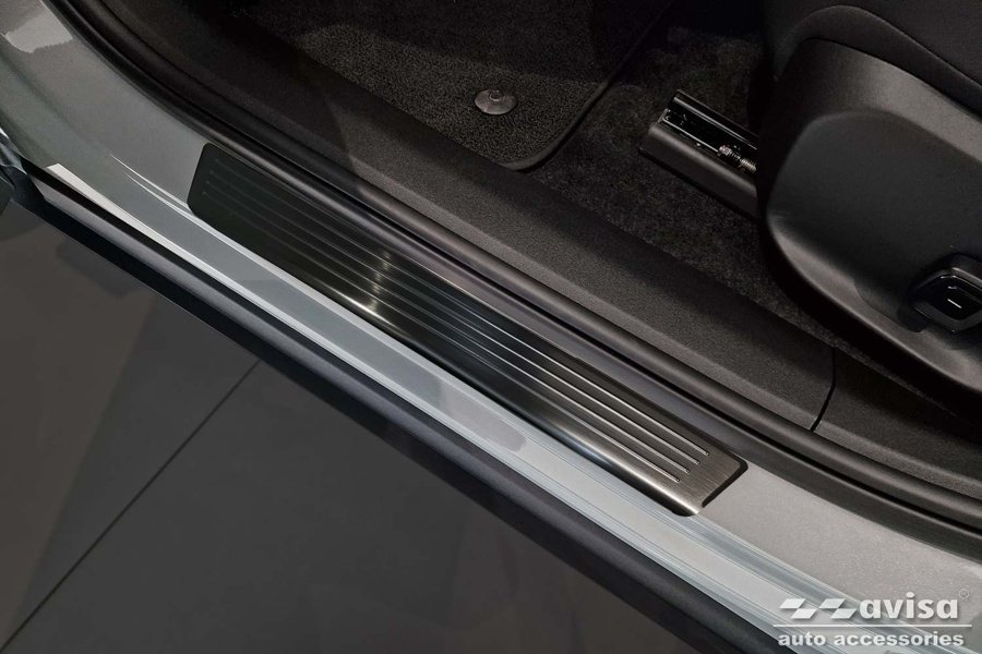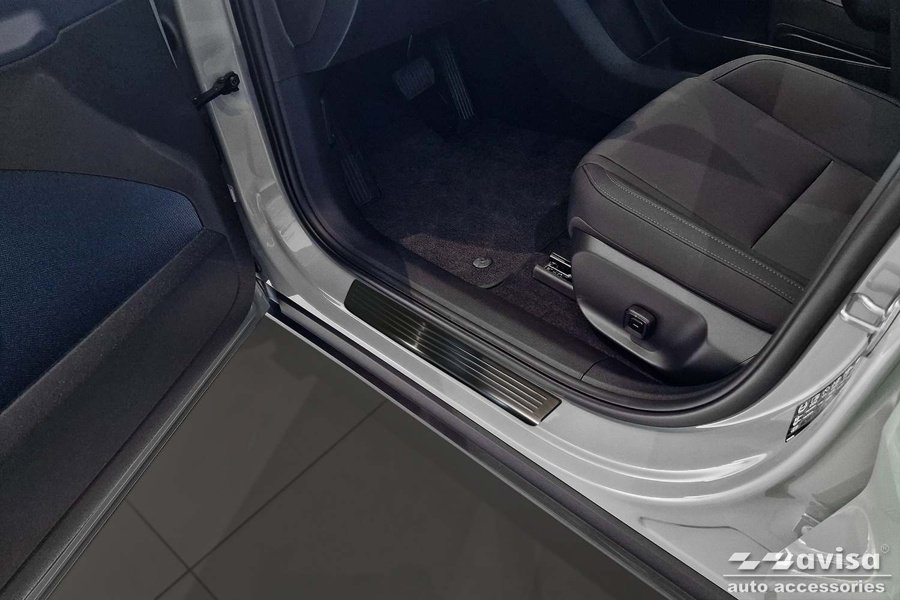 Modellanpassade instegslister i borstat svart stål med en borstad yta till din Volvo EX30 2023-> Ge din bil ett exlusivare utseende och samtidigt skydda dina trösklar. Monteras lätt på din bil med förmonterad 3M-tejp.