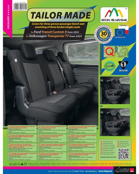 Modellanpassad bilklädsel / Bilstolsöverdrag till Transit Custom II från Kegel.