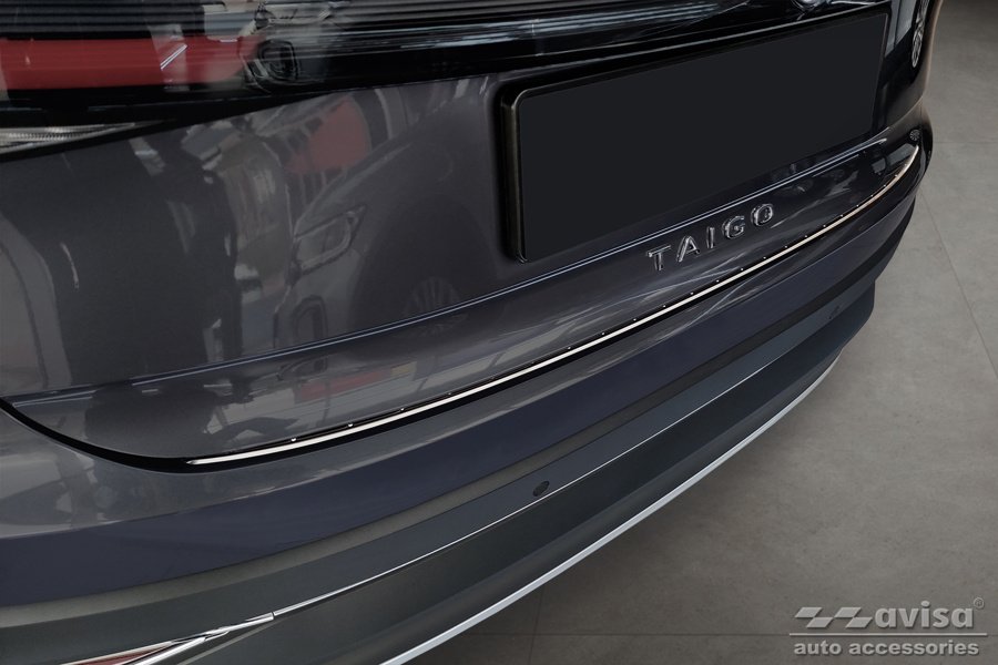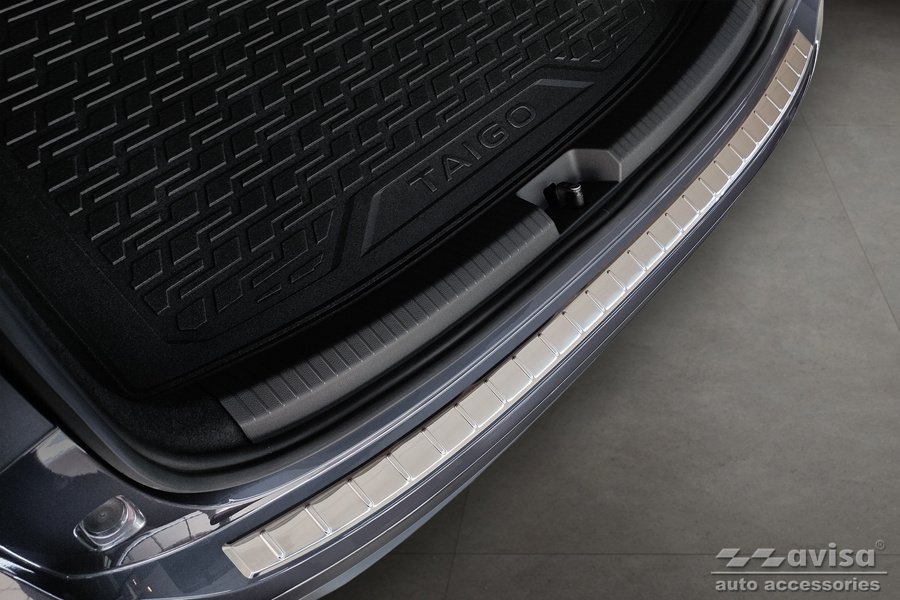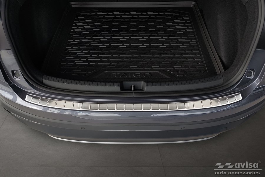 Modellanpassat lastskydd till VW Taigo från 2021 i rostfritt stål med en borstad yta. Den borstade ytan ger lastskyddet ett sportigare utseende med sin matta finish.