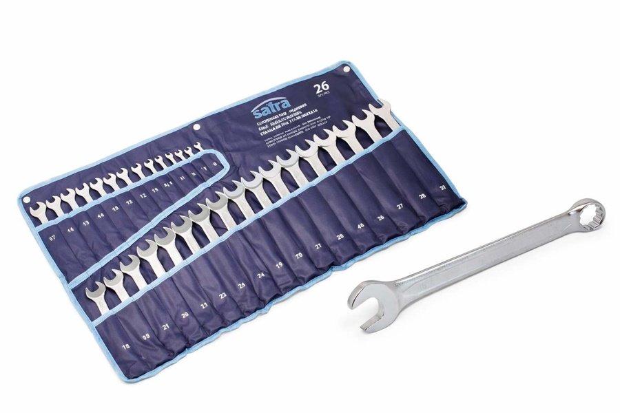 Denna ringnyckelsats i 26 delar är ett komplett och praktiskt verktyg för både professionella mekaniker och hemmafixare.