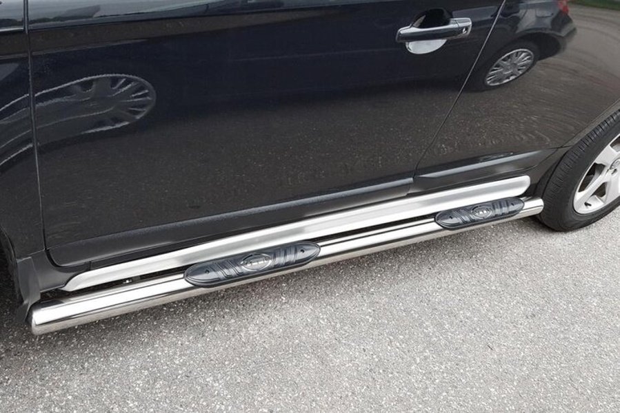 Modellanpassade sidorör (ett par) tillverkade i högpolerat rostfritt stål. Dessa sidorör har praktiska instegslister i slitstark plast. Passar Nissan Juke av årsmodell 2010 och framåt. Sidorören är tillverkade så att man vid montering använder sig utav färdiga fästpunkter under bilen. Rörens diameter är 76mm. Pris per par (2st H+V).