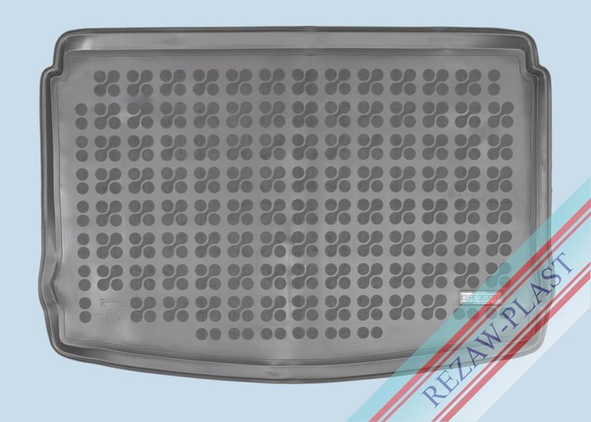 Modellanpassad bagagerumsmatta i svart gummi.